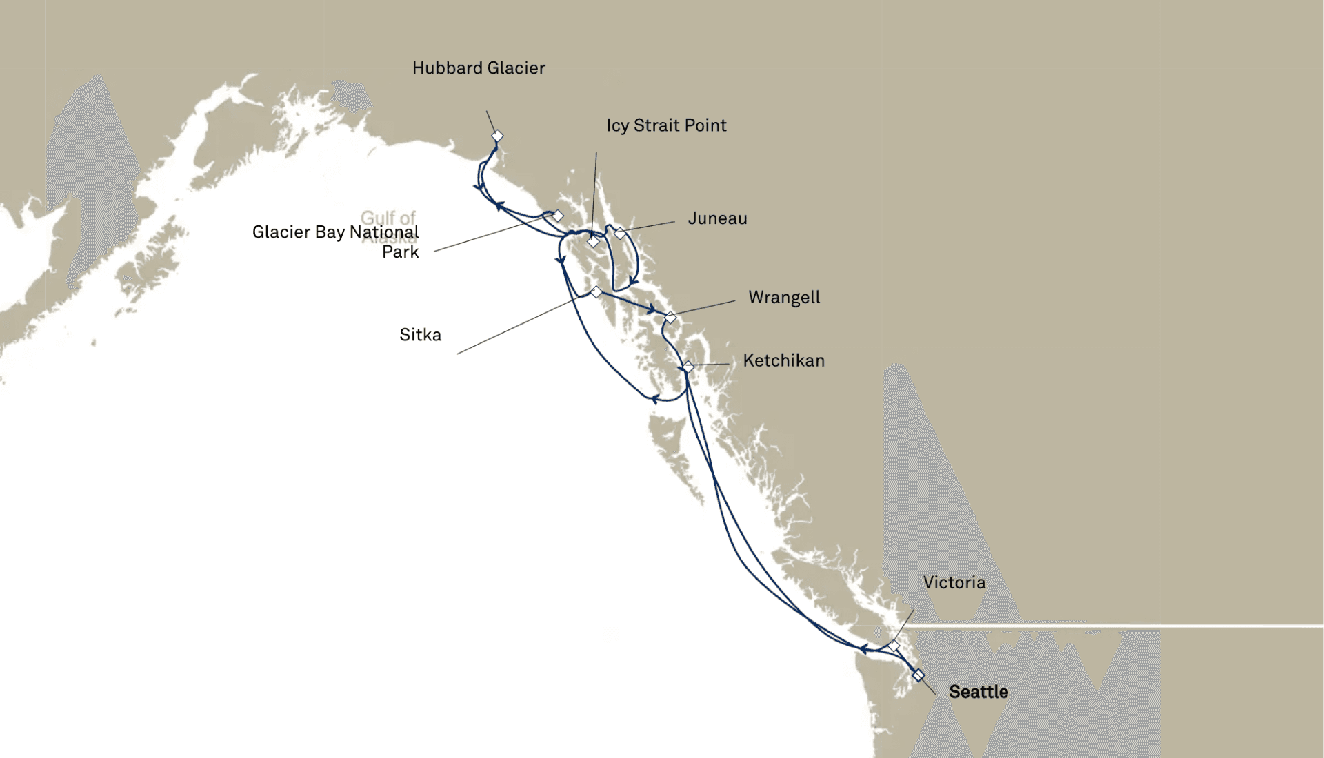 Masivní ledovce padající do moře, medvědi grizzly lovící losose a zasněžené vrcholky hor sahající k obloze. Aljaška je ztělesněním divoké přírody – od národního parku Glacier Bay přes malebný Juneau až po fjordy plné velryb. Každý den nabízí nový úchvatný pohled na sílu severoamerické divočiny. A plavba je nejlepší způsob, jak se dostat do míst, kam se autem nedostanete.