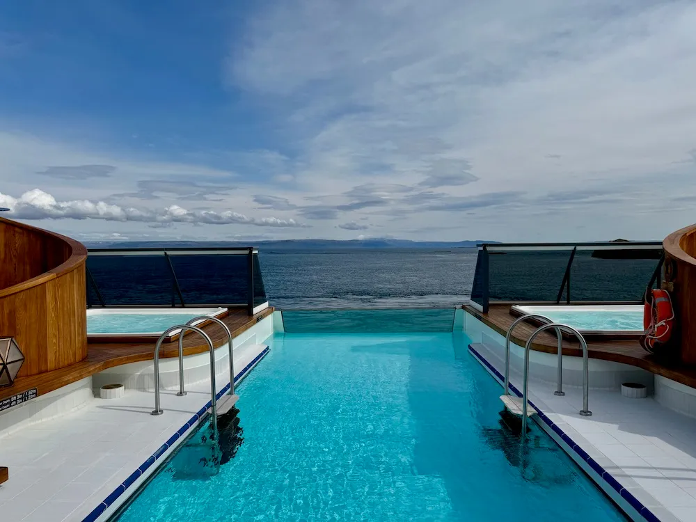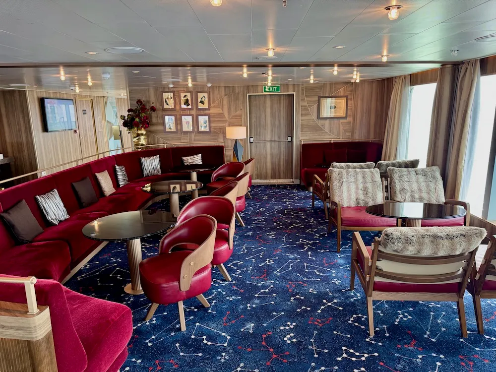 - ubytování v apartmá s vlastní koupelnou, televizí, telefonem, toaletním stolkem a fénem - soukromá veranda s výhledem na moře ve všech apartmá - luxusní Spa & Wellness centrum, fitness centrum, sauny a vířivky - Discovery Center s vzdělávacími přednáškami a expedičními prezentacemi - pro expediční aktivity jsou připraveny speciální programy včetně výletů na Zodiac® člunech - zábava od živé hudby a představení po večerní programy pod antarktickým nebem - všechny stravovací služby, od hlavní restaurace s gourmet menu po specializované restaurace - k dispozici jsou expediční aktivity, přednášky o antarktické přírodě a wildlife, možnost kajak a ponorka (za příplatek)